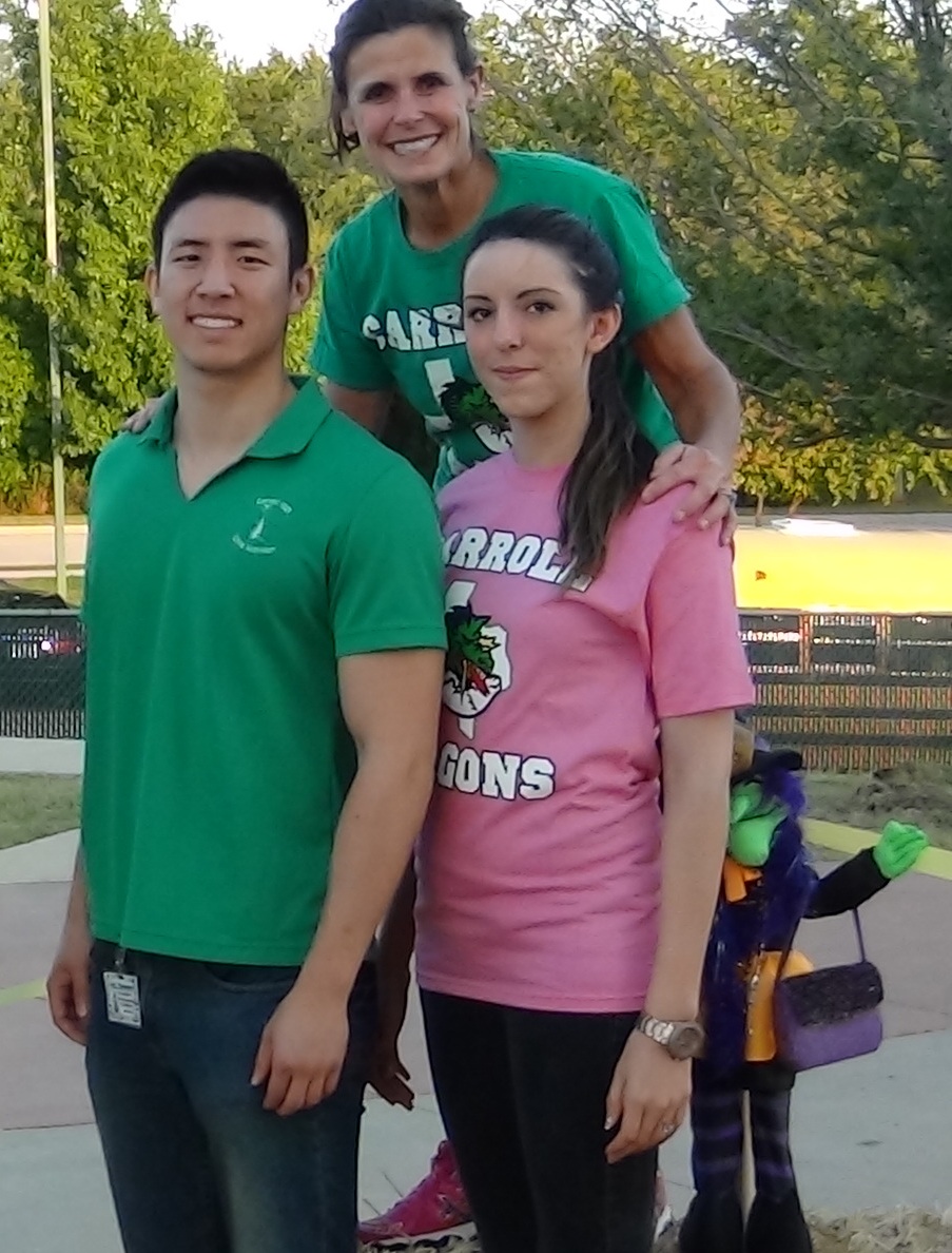 Thompson Dou (left), a senior in Communication Studies, is currently interning with the Carroll Independent School District's Child Nutrition department. His supervisor was Mrs. Haitz (back).