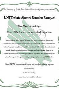On May 1st, the UNT Debate Team hosts an honorary banquet for all UNT Debate Alumni!