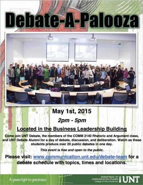 Friday, May 1st marks the return of Debate-A-Palooza! This event will take place in the Business Leadership Building and will showcase the final debate project of the students in COMM 2140: Rhetoric and Argument.