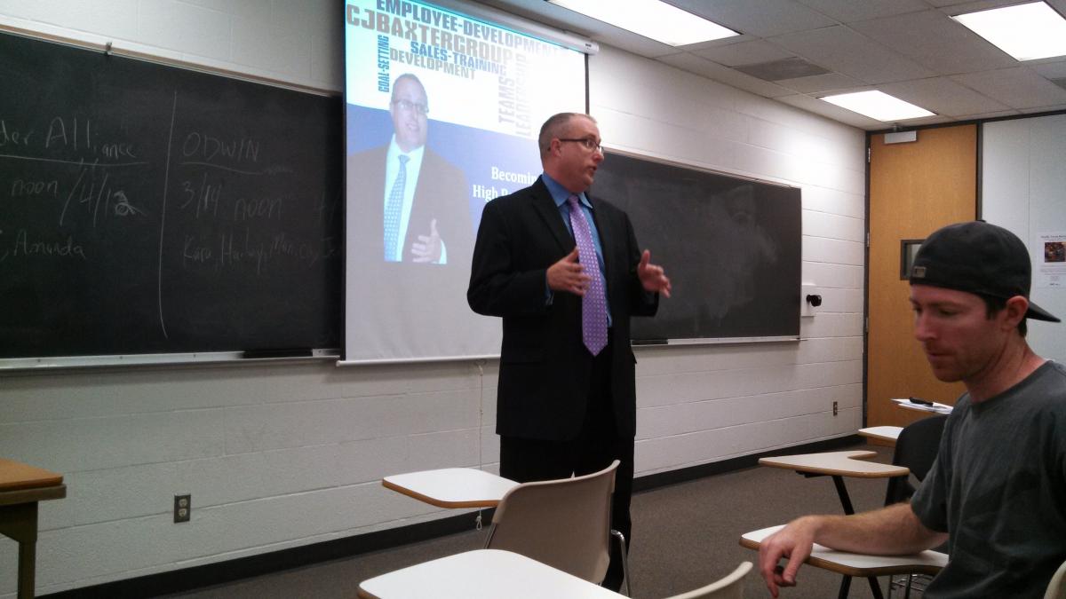 Kent Hutchinson, Senior Partner at C.J. Baxter Group, guest lectured to Dr. Brian Richardson's Communication and Consulting class Monday, March 4, 2013. Mr. Hutchinson is an expert in employee development, training, and consulting. He has worked with hundreds of companies and talked with students about his experiences, including his upcoming trip to India to provide customer service training for a telecommunications company.
