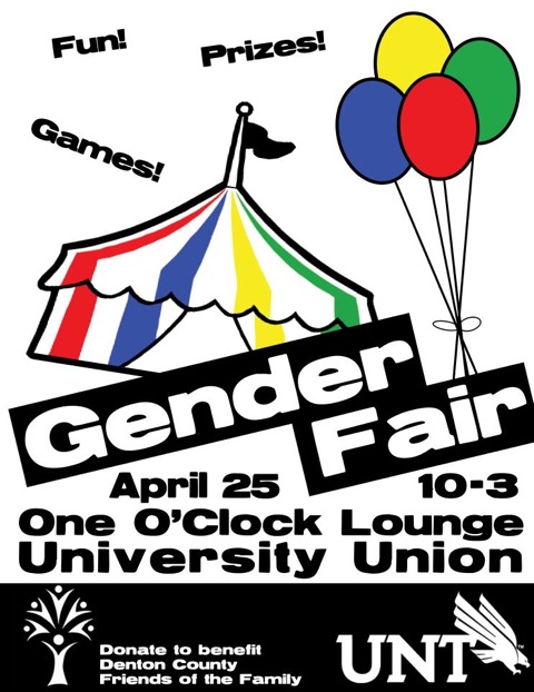 Every semester, Dr. Suzanne Enck and undergraduate students of the Gender and Communication course host the Gender Fair, and event held to teach and inform students in our community about the constructs of gender in society. The students create interactive booths that feature games and other educational information that engages the community about topics such as feminism, sexuality, masculinities, and race and gender. This semester's Gender Fair will be on April 25th in the 1 O'clock Lounge from 10 AM to 3 PM in the University Union, and will be the sixth fair since Dr. Enck joined the faculty in the fall of 2009.