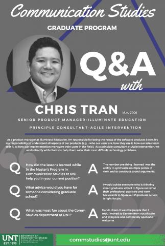 Q: How did the lessons learned while in the Master's Program in Communication Studies at UNT help you in your current position?