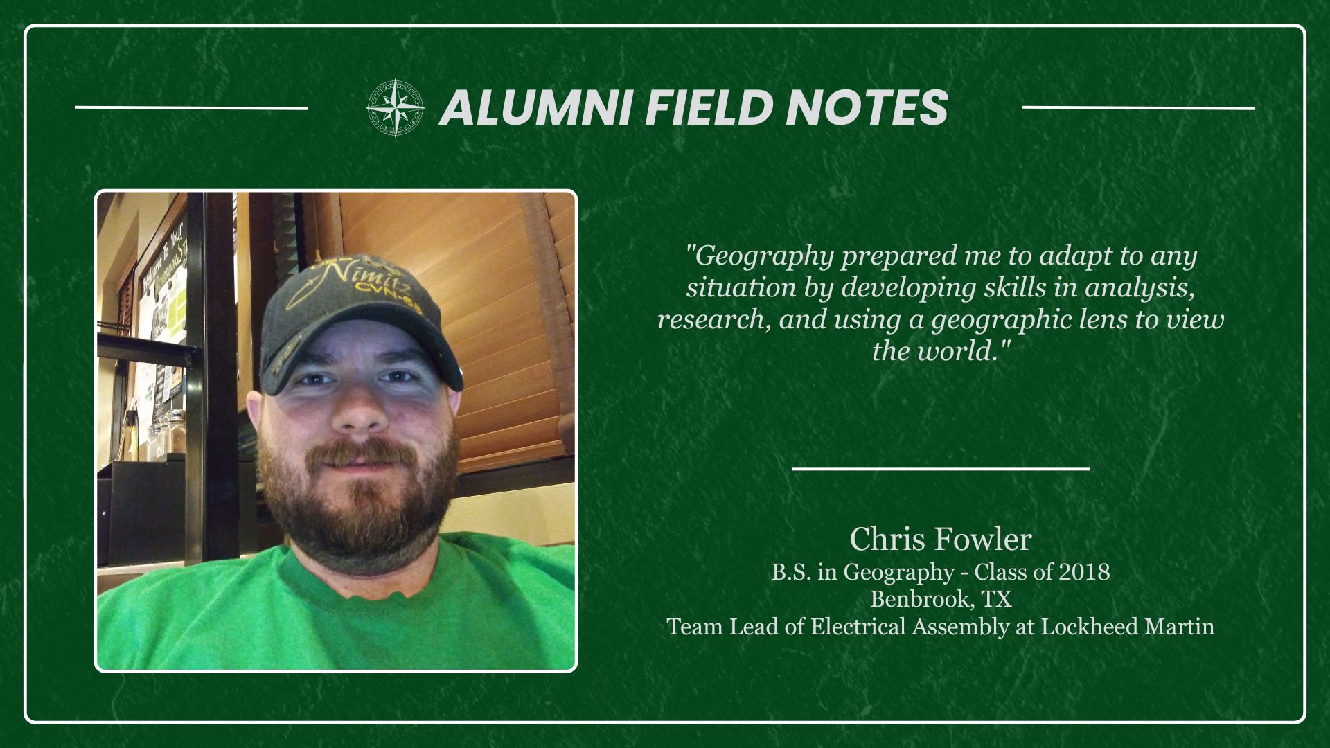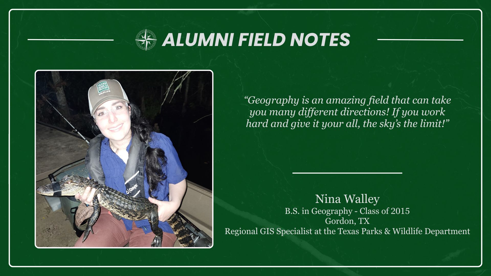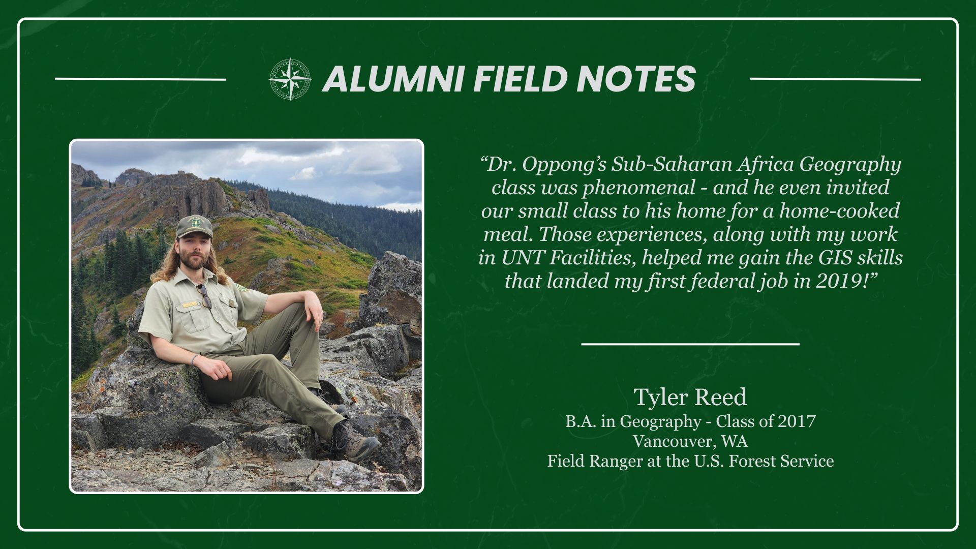 Anyone who has earned a UNT Geography credential — including BA, BS, MS, certificates, minors, etc. — is welcome to join. You’ll find