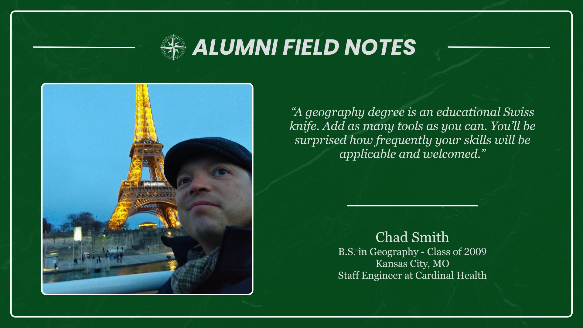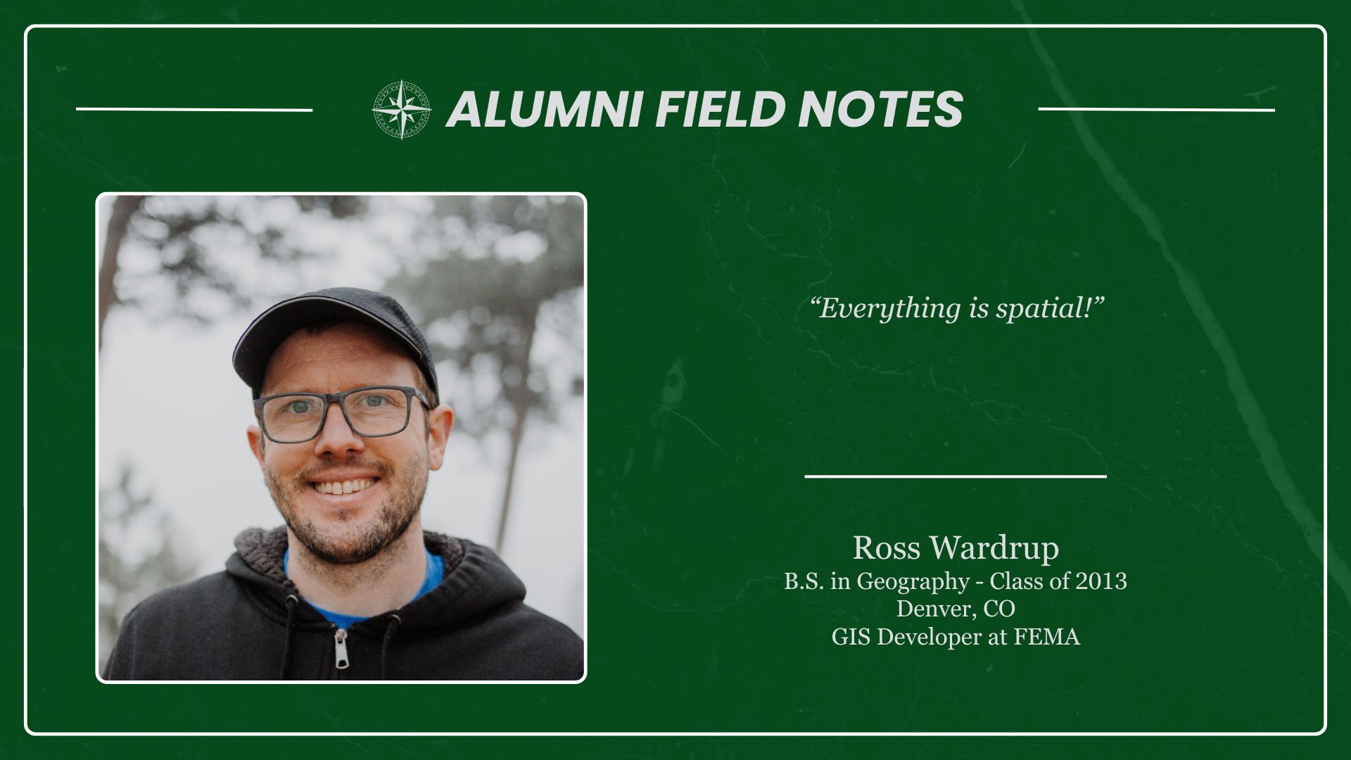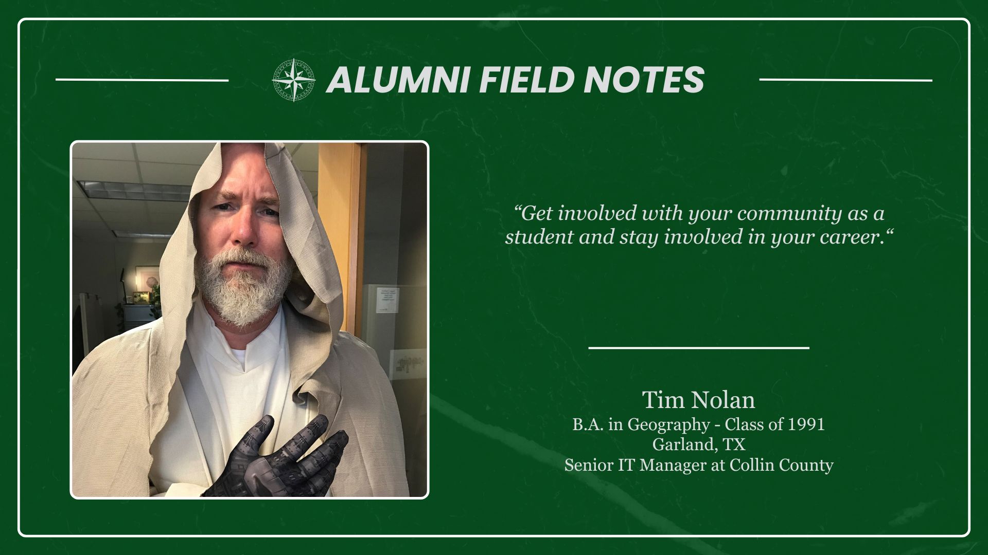 Anyone who has earned a UNT Geography credential — including BA, BS, MS, certificates, minors, etc. — is welcome to join. You’ll find