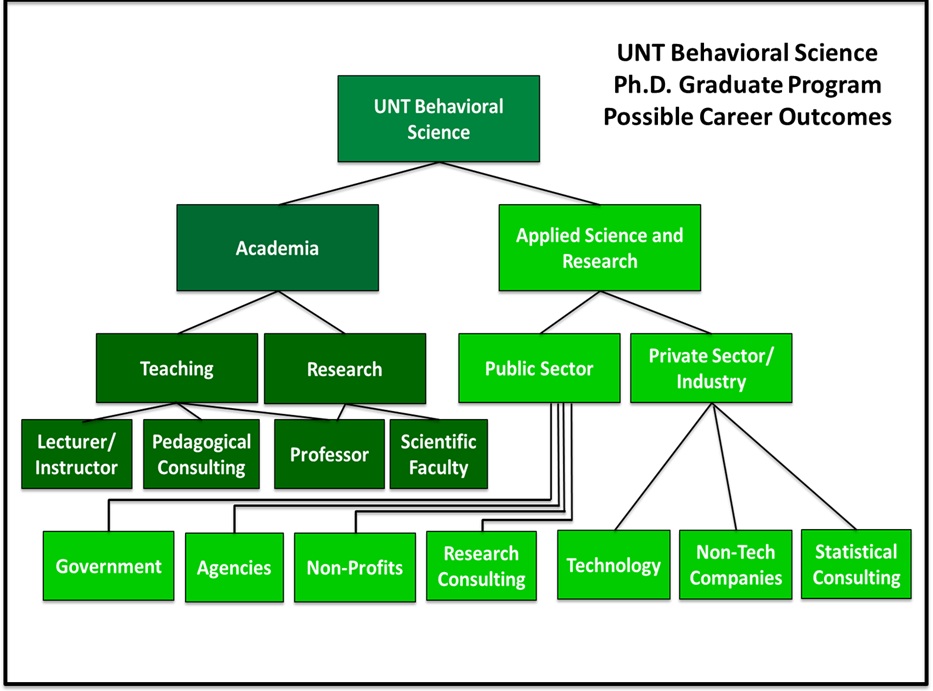 The Behavioral Science (BSci) Program at the University of North Texas provides training for students interested in careers in behavioral research, industry, and teaching. Most students who are admitted aspire to a position in academics; however, opportunities for employment in private industry or research institutes also exist.