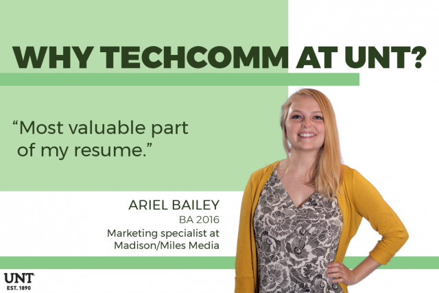 We are incredibly proud of our alumni and their professional successes. We currently have alumni working in dozens of industries all over the world, and many of our students also go on to top-tier graduate schools and study professional and technical communication at the doctoral level.